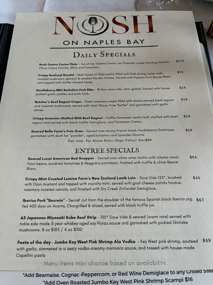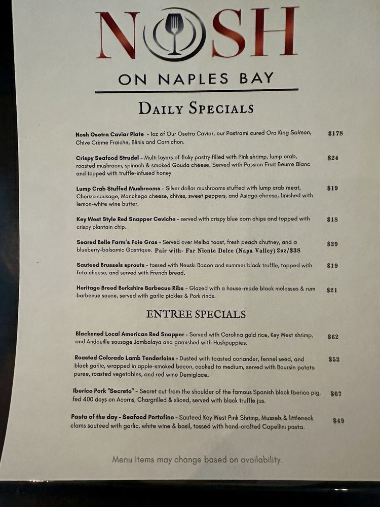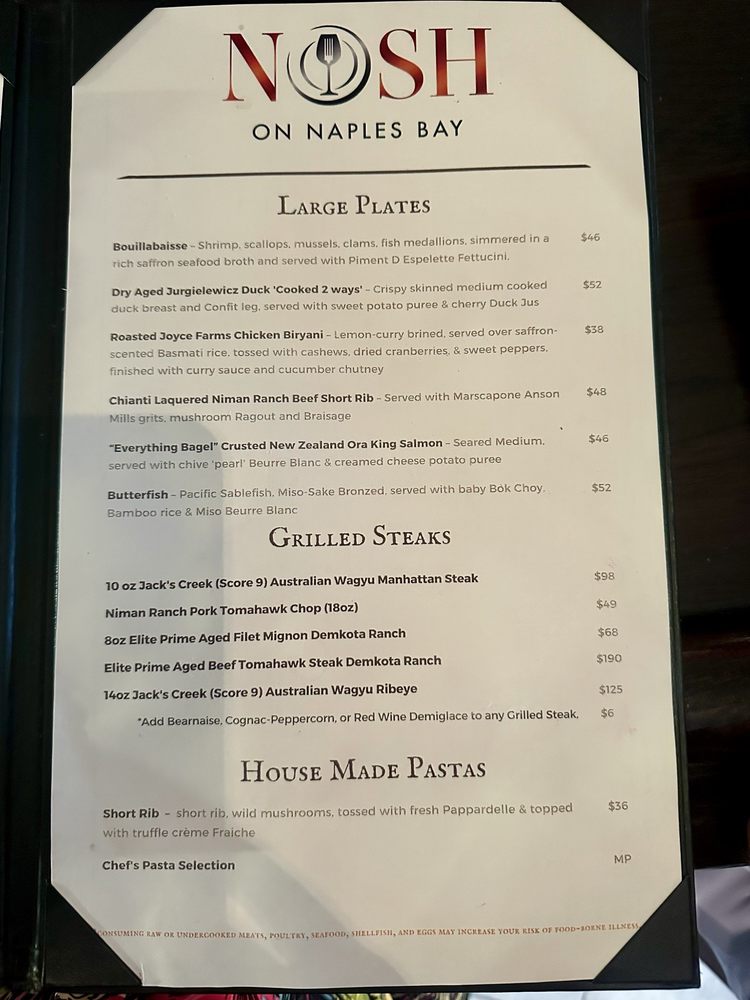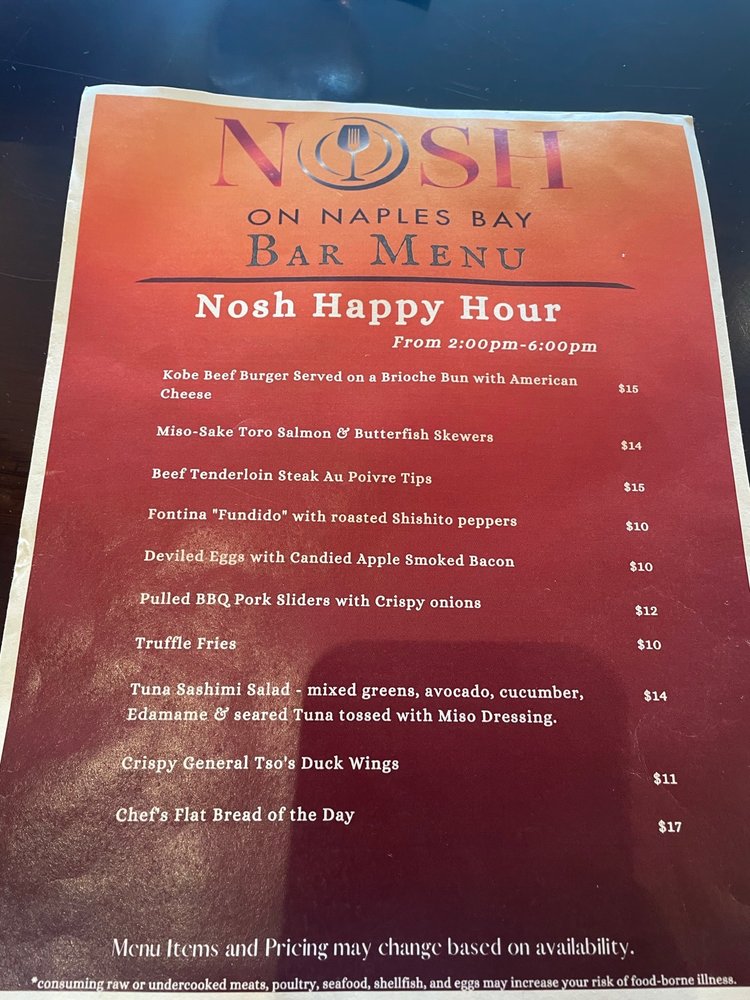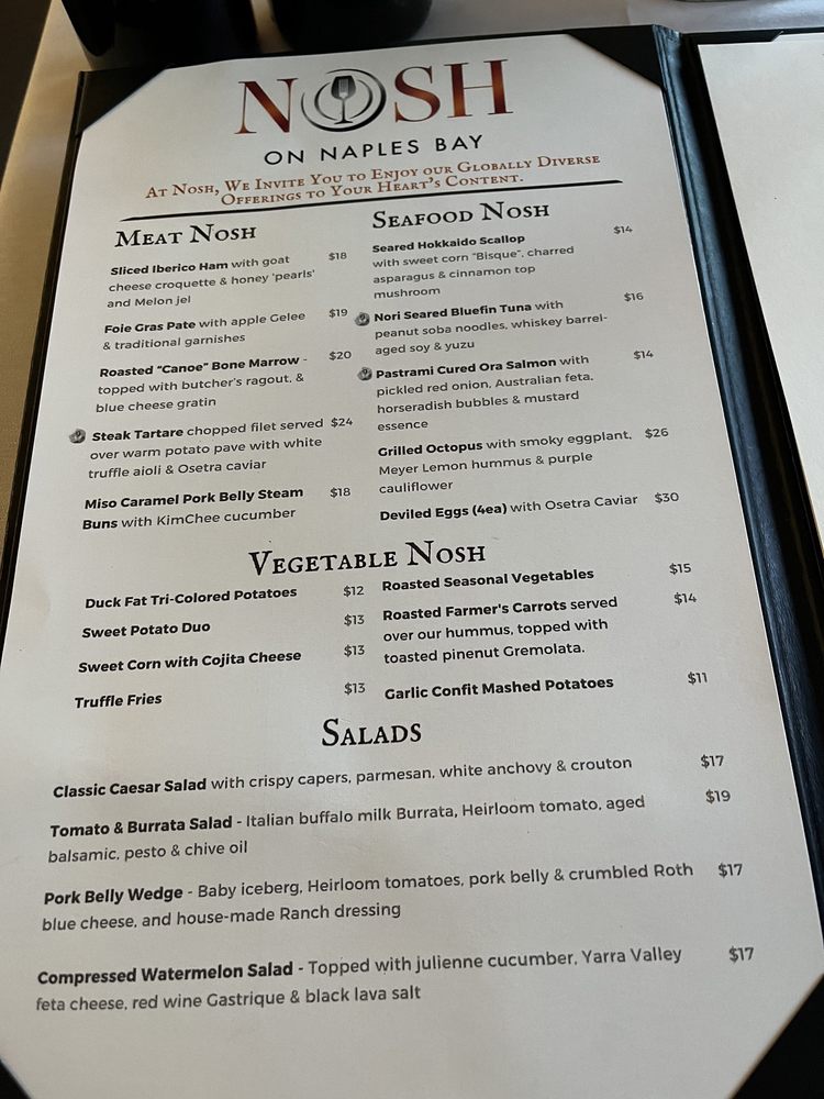 With options for outdoor seating and attentive service, Nosh on Naples Bay promises an exceptional dining experience that you'll want to revisit during your stay in Naples.